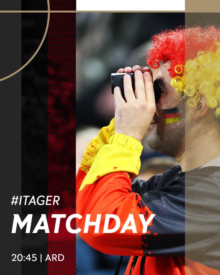 德國隊官方社媒發(fā)布海報預(yù)熱這場比賽,海報內(nèi)容為德國球迷手拿望遠鏡觀賽的場景。
