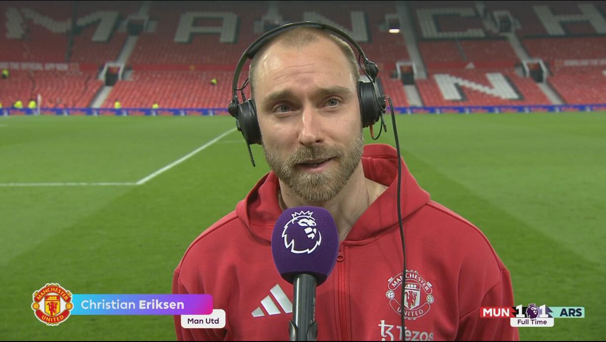 03月10日訊 在今天凌晨剛結束的英超第28輪,曼聯主場1-1戰平阿森納的比賽賽后,曼聯中場大將埃里克森接受了天空體育的采訪。