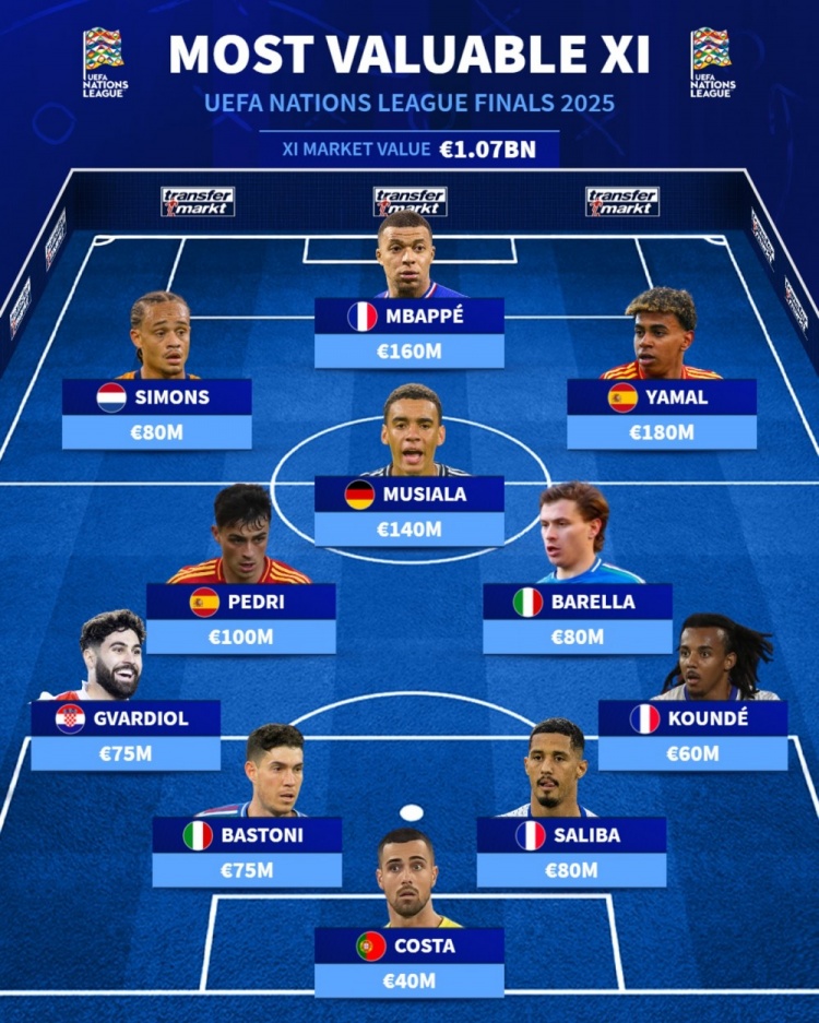歐國聯1/4決賽最貴陣容:姆巴佩、亞馬爾在列,總價10.7億歐