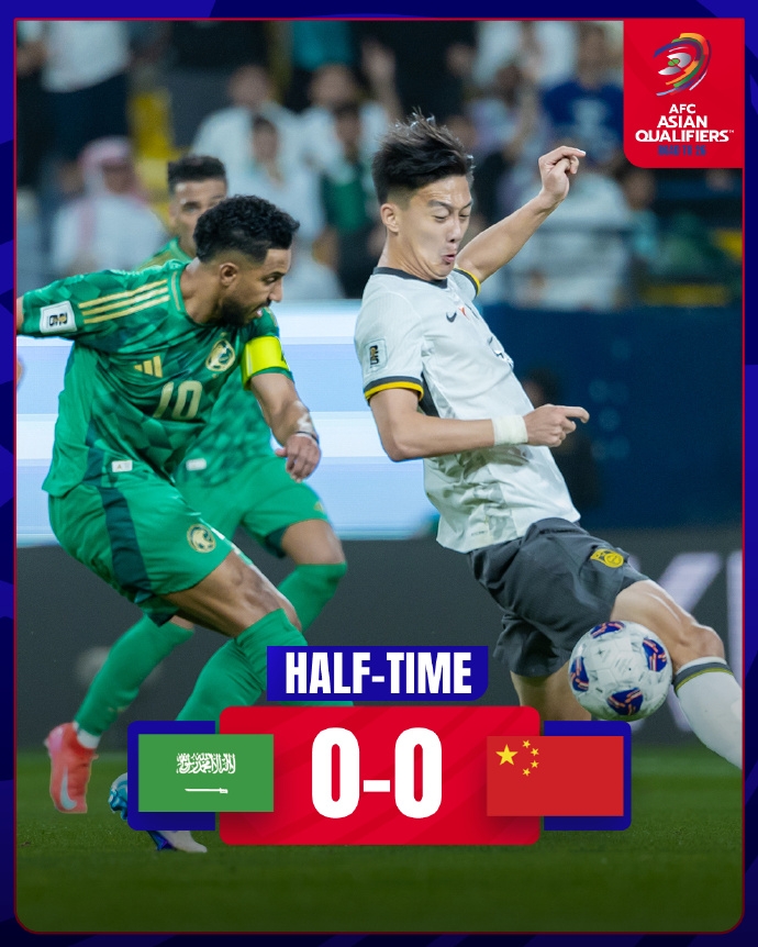 實時積分榜:國足6分凈勝球-11墊底 沙特9分升第三