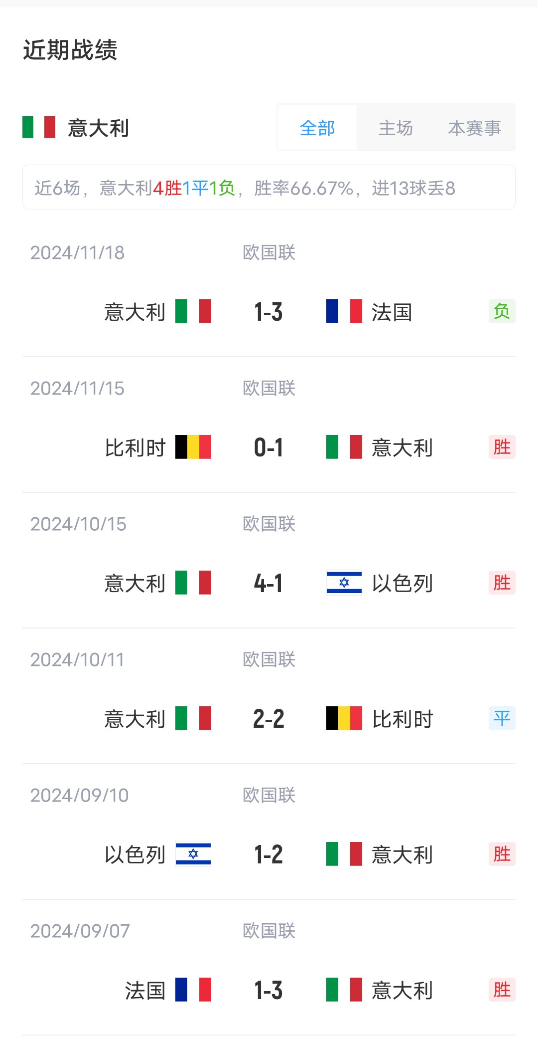 在歐國聯(lián)小組賽中,意大利排名B組第2,德國排名C組第1;雙方近6場直接對話中,意大利取得了1勝4平1負的戰(zhàn)績。兩隊最近一次交手,是在2016年11月16日,友誼賽意大利0-0戰(zhàn)平德國。