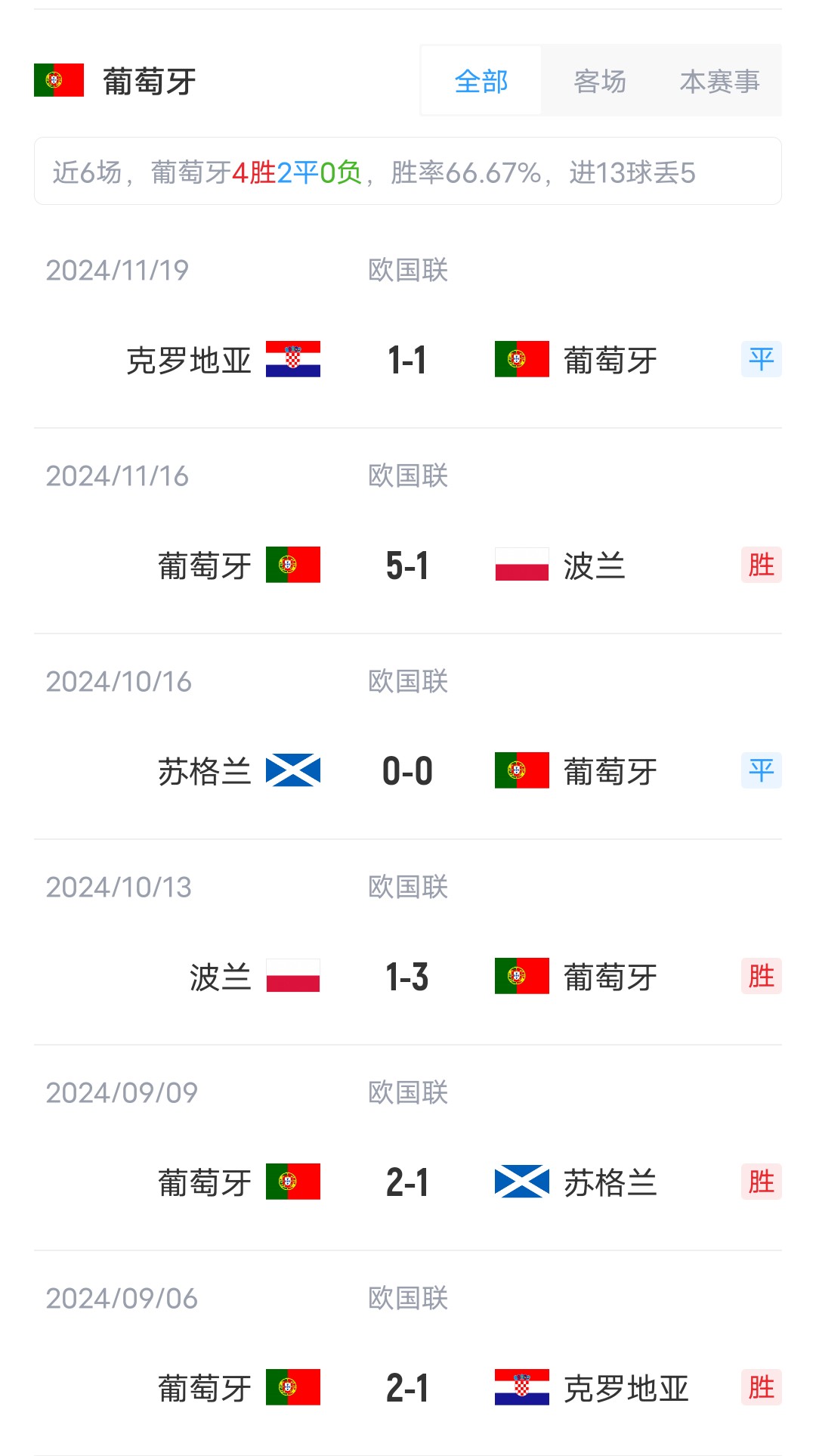 葡萄牙首發:1-科斯塔、19-門德斯、3-迪亞斯、13-維加、5-達洛特、15-若奧-內維斯、8-B費、23-維蒂尼亞、9-內托、7-C羅、17-萊奧