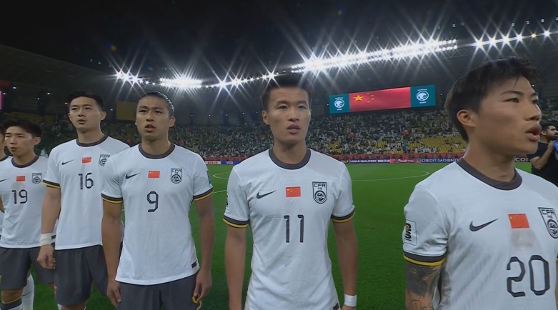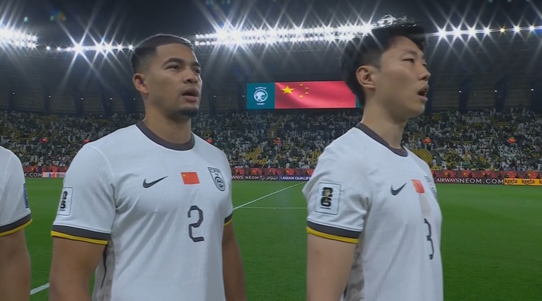 大戰一觸即發!賽前國歌儀式,國足首發11人高唱國歌