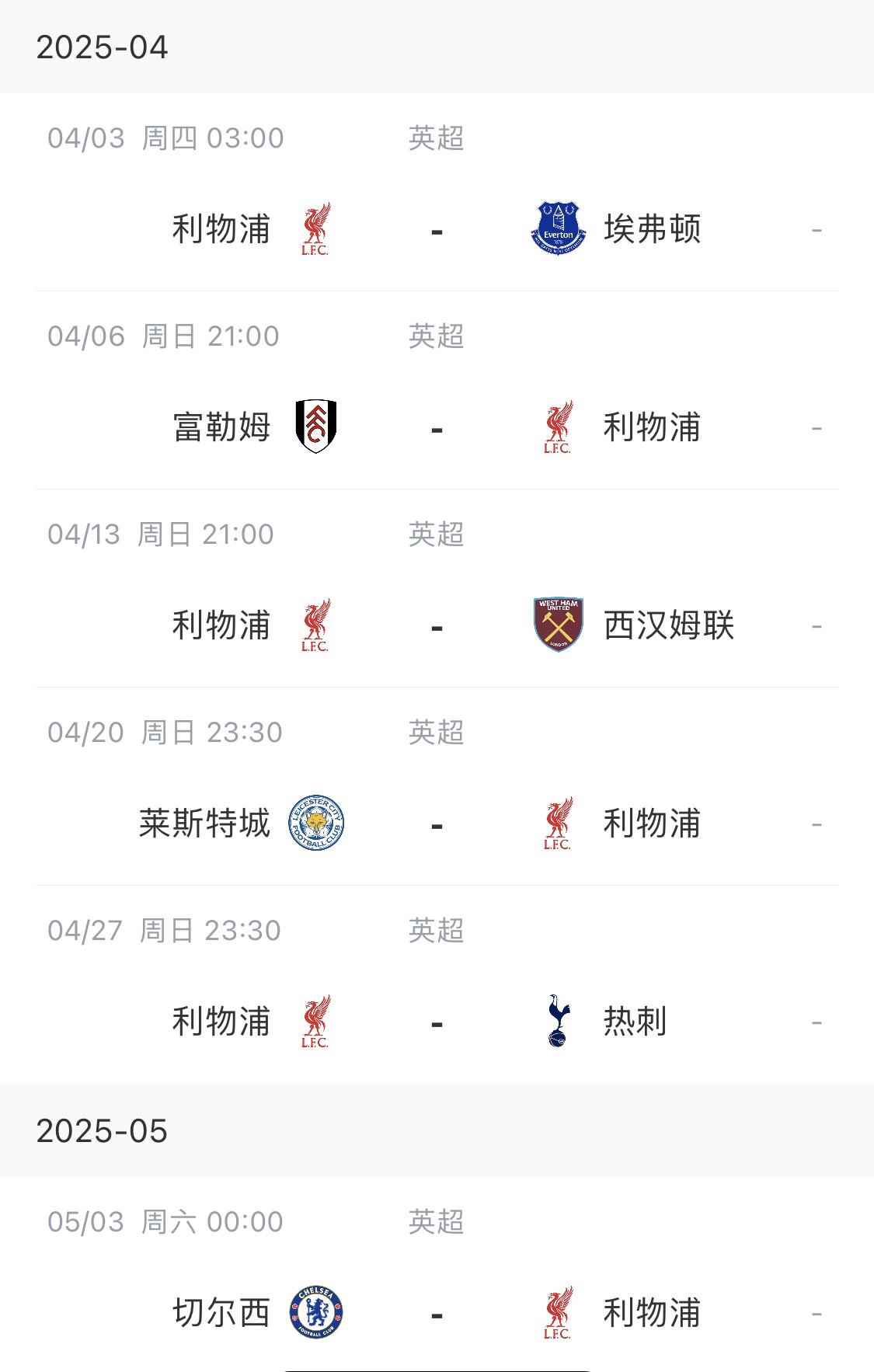 若4月27日利物浦迎戰(zhàn)熱刺前,利物浦仍領(lǐng)先15分,那么這場比賽紅軍只要確保不敗,即可提前4輪奪冠。
