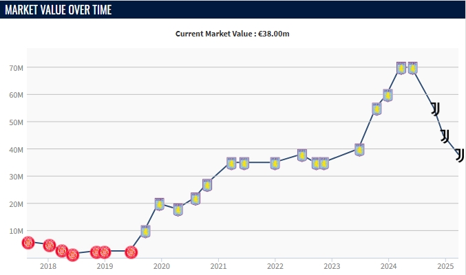 03月26日訊 昨日德轉更新意甲球員身價,去年夏窗轉會至尤文的道格拉斯-路易斯身價再次下跌,僅剩3800萬歐,而他在去年從維拉轉會至尤文時,身價還高達7000萬歐。