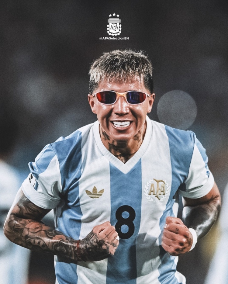 阿根廷隊(duì)官方更新社媒動(dòng)態(tài),曬出將恩佐P上墨鏡的照片,稱贊他的出色表現(xiàn)。