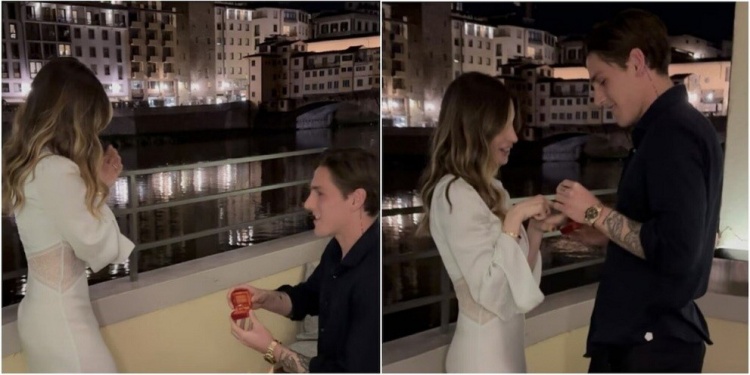 扎尼奧洛在社媒發(fā)布了自己向薩拉求婚的照片,求婚地點(diǎn)是佛羅倫薩著名景點(diǎn)老橋。當(dāng)時(shí)扎尼奧洛單膝下跪,并把戒指戴在薩拉的手指上。扎尼奧洛還配文稱:“現(xiàn)在和永遠(yuǎn)。”
